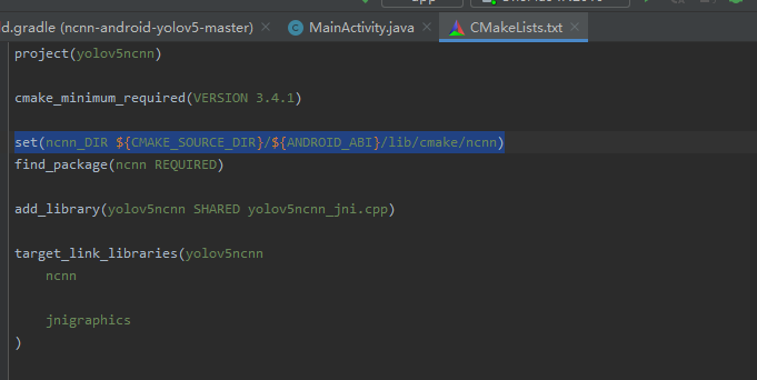 CMakeLists.txt,将其中的ncnn_DIR变量值修改成